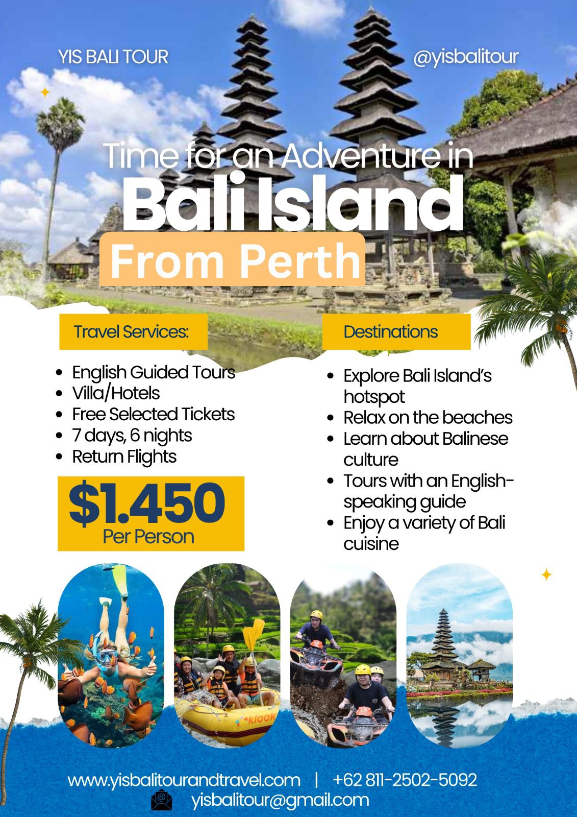 YIS Tour Bali offers a variety of exclusive tour packages to help you explore Bali’s most beautiful destinations in comfort and style.